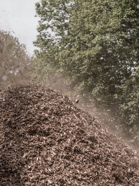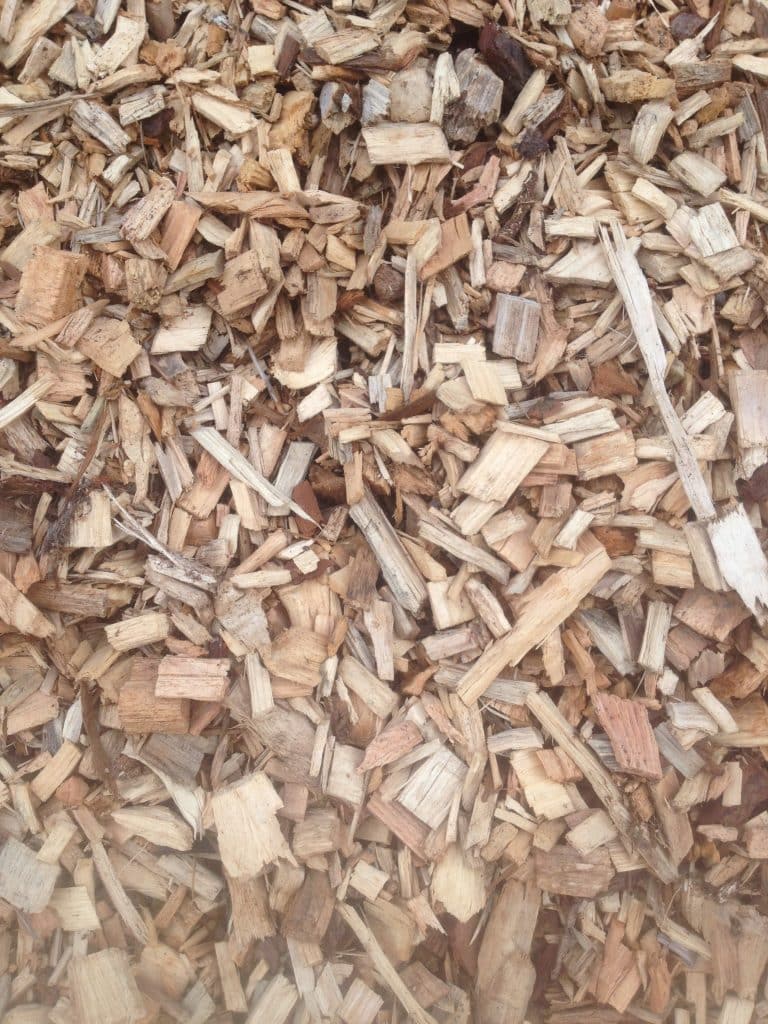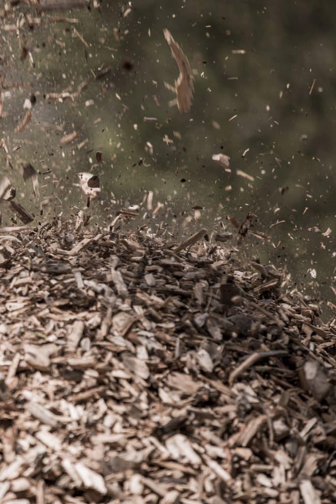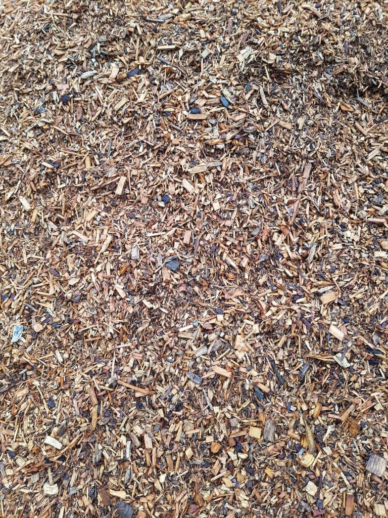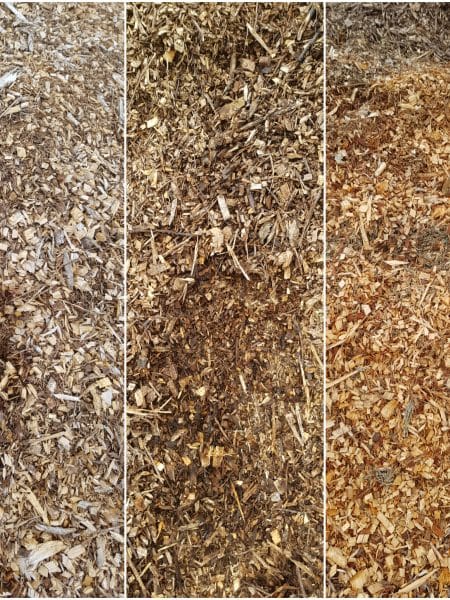 Produit issu du déchiquetage d’arbres entiers d’où la présence de matières vertes (feuilles, épines, brindilles…). Cela offre une durée de vie plus longue que le BRF et apporte visuellement un aspect moins sombre.