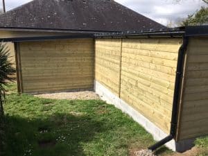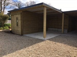 Abri en bois sur-mesure avec porte coulissante, vitre et double carports