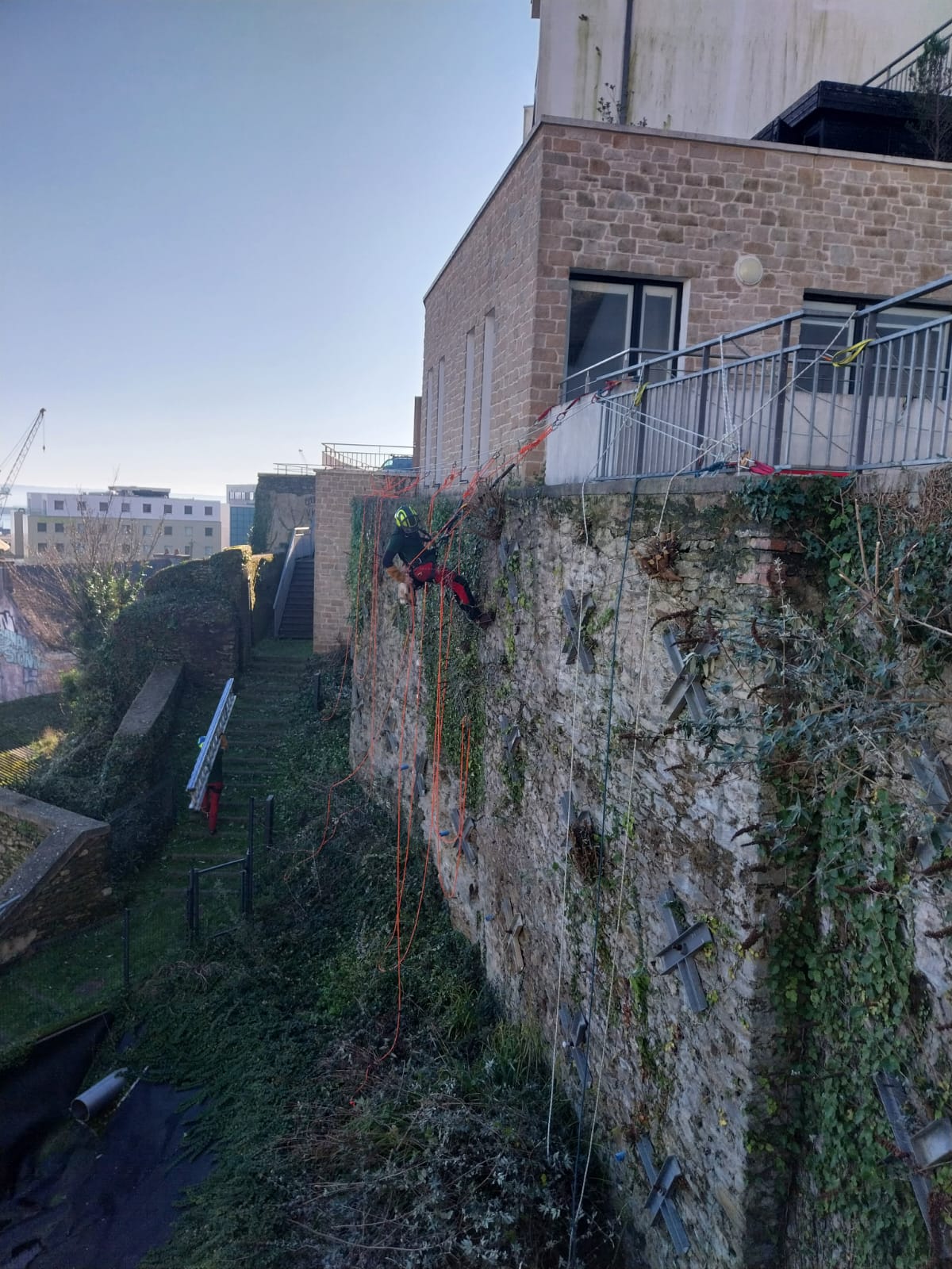 Description : Dans le cadre d’un marché pour Brest Métropole, notre équipe s’est mobilisée pour le débroussaillage et la coupe des végétaux sur différents murs de la ville.